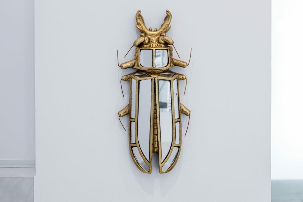 Le tout est complété par des accessoires élégants – d’immenses miroirs qui agrandissent optiquement l’intérieur déjà grand et des insectes dorés avec un verre miroir dans lequel la lumière est magnifiquement réfléchie et scintillante.